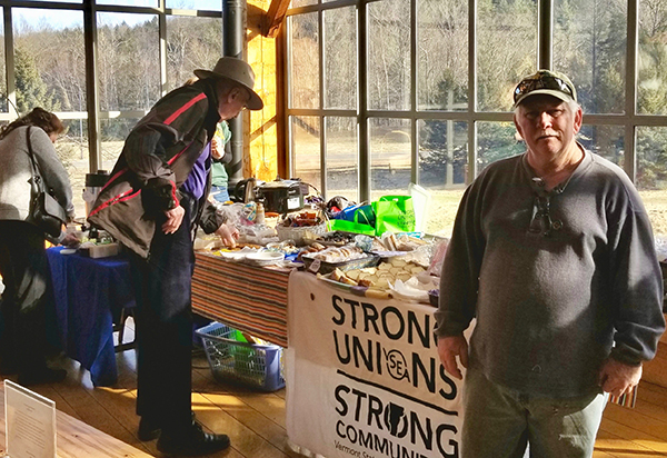 | VSEA Member Jim Agate (BGS) staffs the Chapter’s table as travelers peruse the baked goods–and learn about the union! |