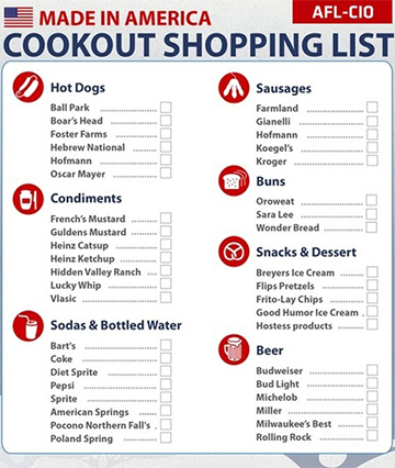 Here’s the AFL-CIO Cookout Shopping List with union made brands. Support fellow unions members by purchasing these products!
