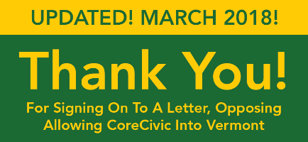 If your lawmaker(s) signed VSEA’s CoreCivic letter, please do thank them but also ask them to lobby their colleagues who for some reason have yet to lend their name to stopping this private, for-profit, out-of-state firm (with a notorious reputation) to come to Vermont. Find your Lawmaker’s contact information here.