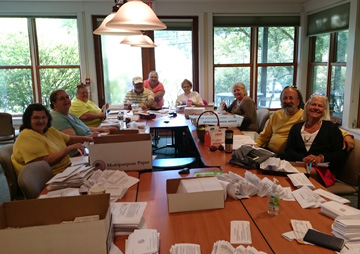 Photo: Members of the VSEA Retirees’ Chapter assemble a recruitment mailing at VSEA headquarters on September 1.