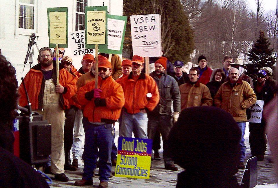 This photo from the 1990’s features a contingent VSEA AOT workers rallying at the State House for fair wages and a fair contract. Looks like the IBEW was in the heat of a similar contract battle and the two unions teamed up to send a message to lawmakers.