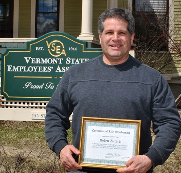 At its meeting this week, the VSEA Corrections’ Unit Bargaining Team presented Southeast State Corrections Officer Bob Ziccardi with a certificate of thanks for Bob’s years of voluntary service to his colleagues and his union. This was Ziccardi’s last meeting before heading into retirement from state service after 28 years.