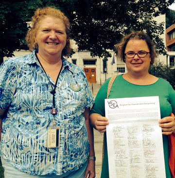 VSEA Judiciary Unit Chair Margaret Crowley, General Counsel Tim Belcher and others were at the Vermont Labor Relations Board on September 3 to participate in a hearing on the VSEA Judiciary Unit’s unfair labor practice charge against management for failing to bargain.